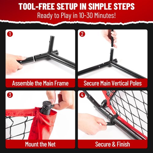 - ⏱ QUICK SETUP, NO TOOLS NEEDED - The SPOYNAL net batting net provides a hassle-free setup, enabling assembly in less than 10-15 minutes without any tools. It comes complete with ground stakes for enhanced stability and is packaged in a heavy-duty carry bag with shoulder straps for convenient transportation.