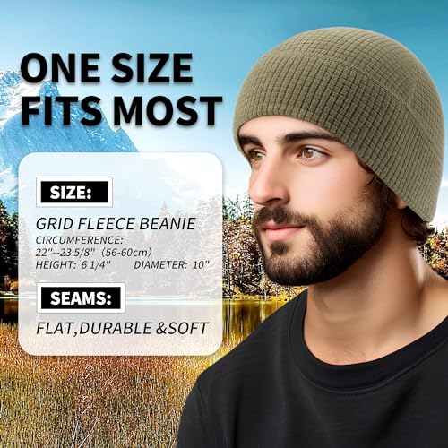 2 Pack Grid Fleece Beanie Watch Cap Waffle Tactical Beanie Multi-Season Army Military Fleece Hat, All Weather Gear