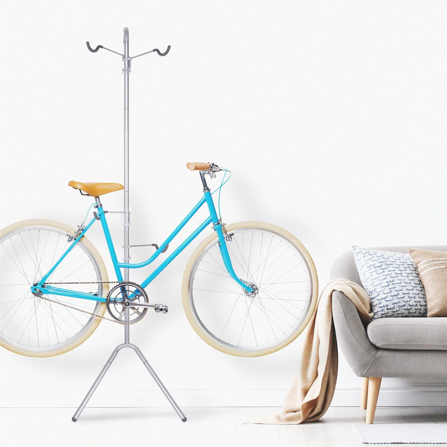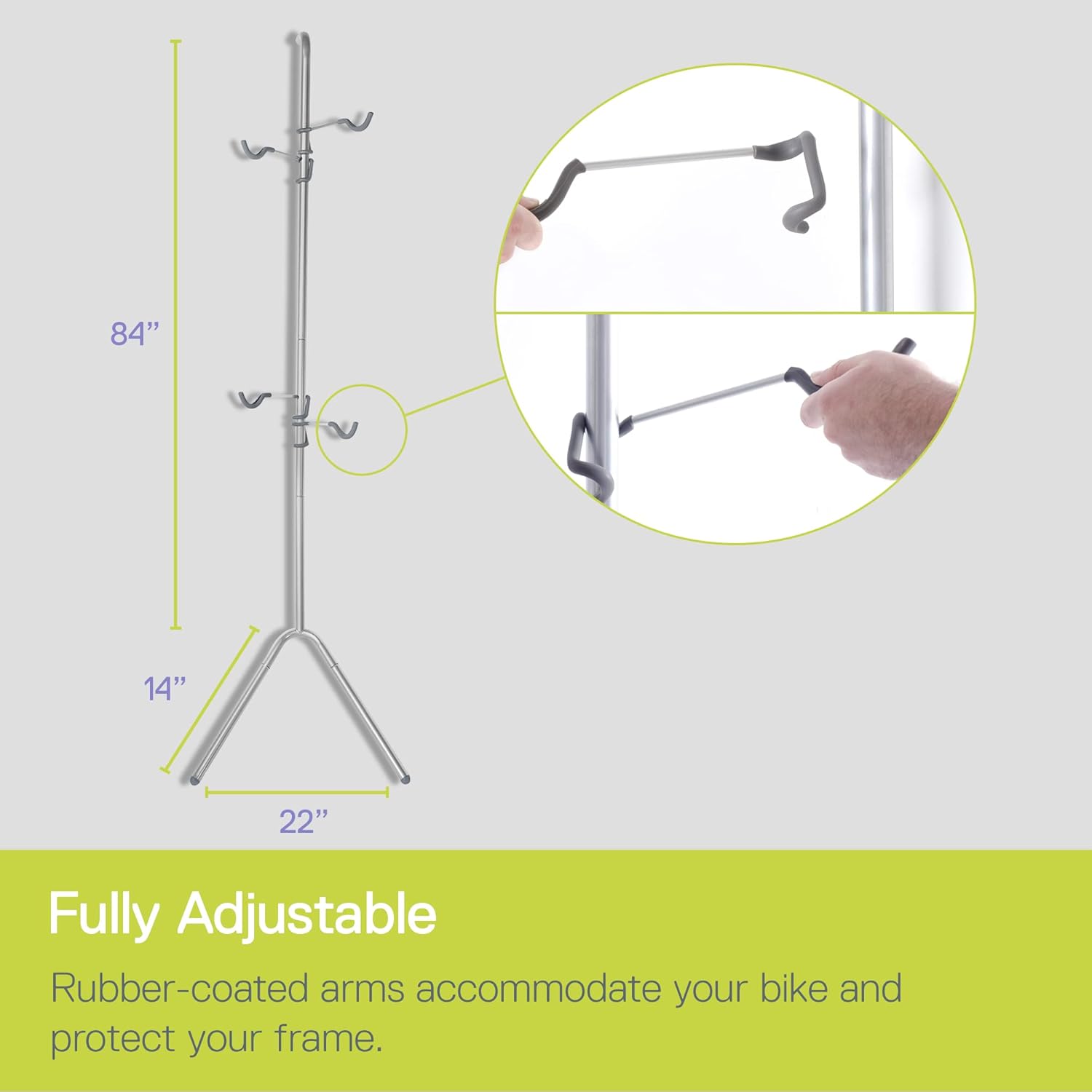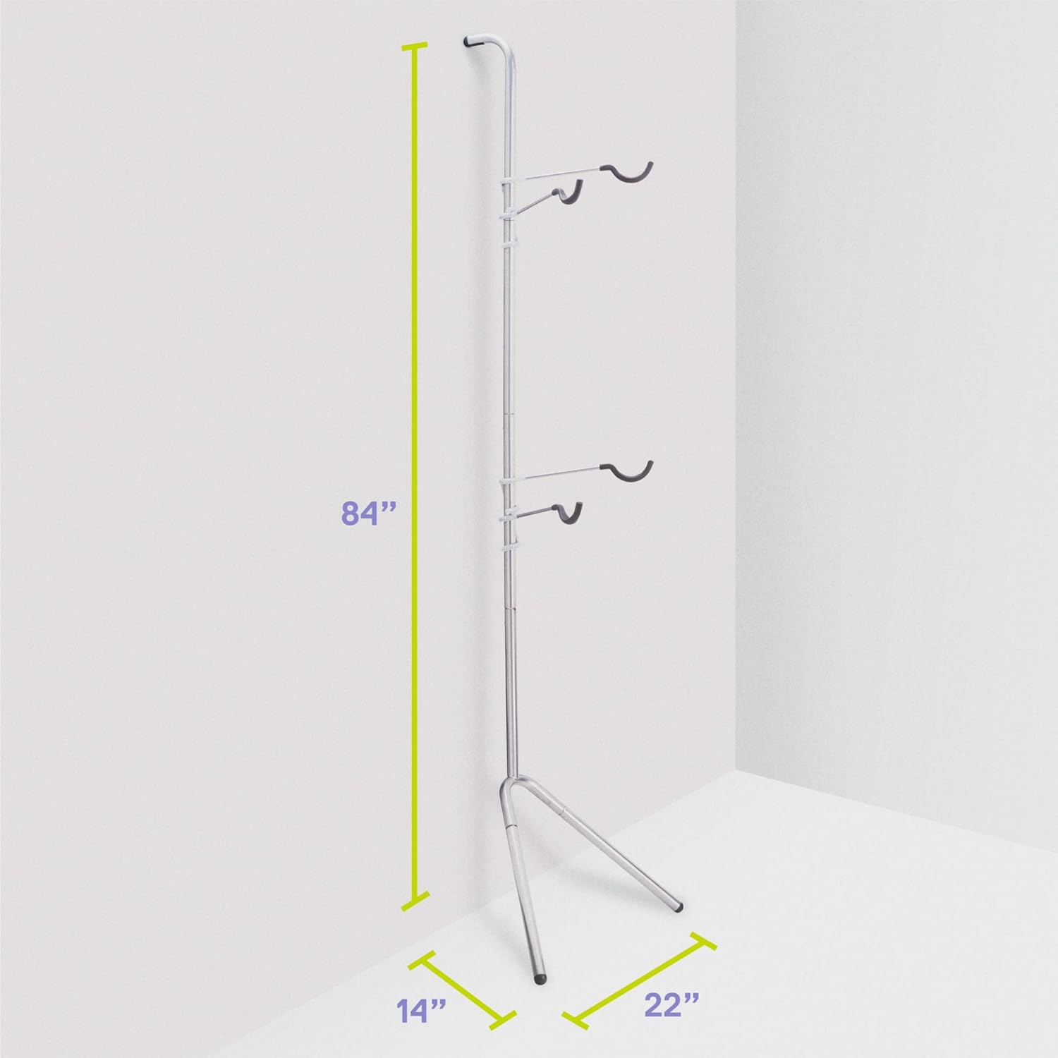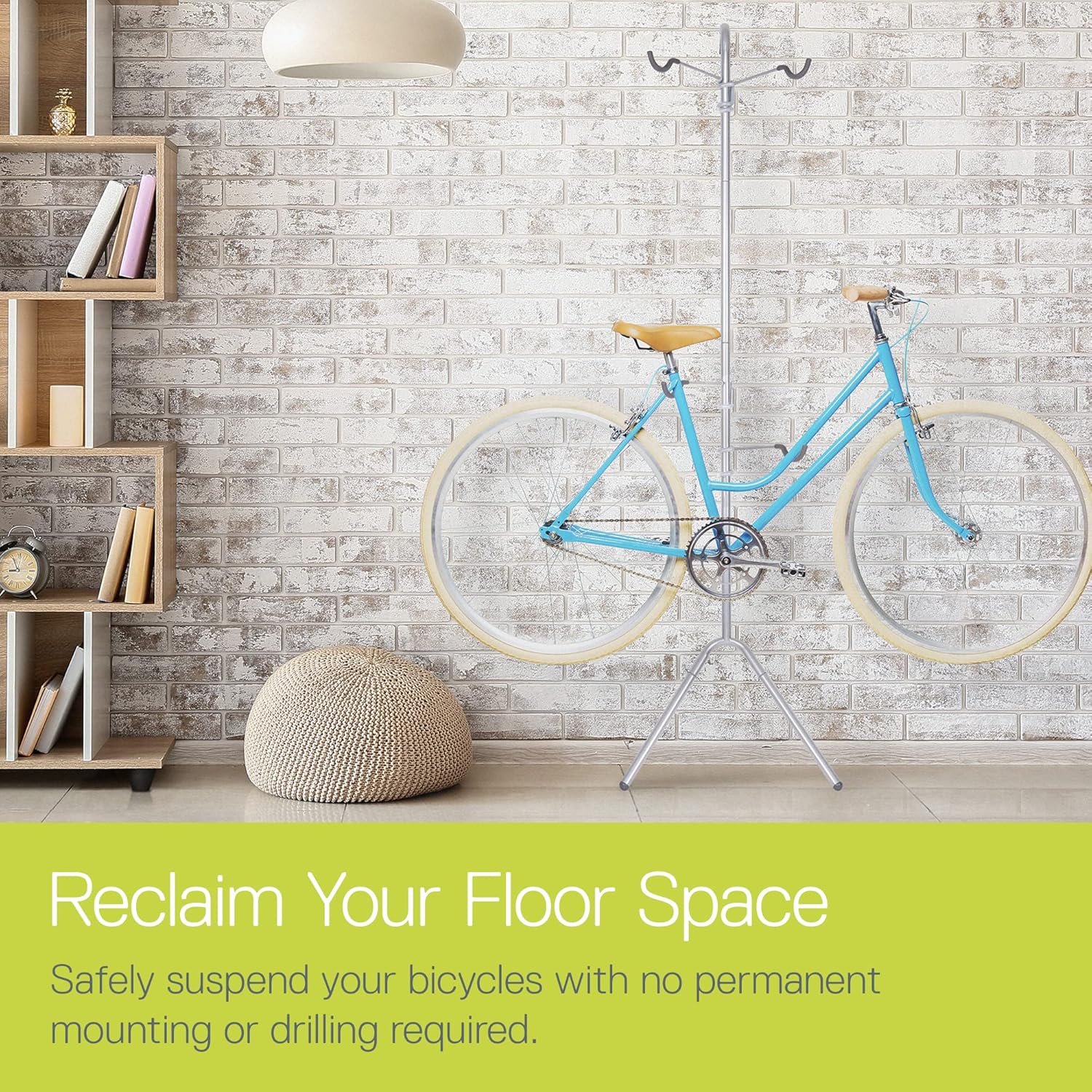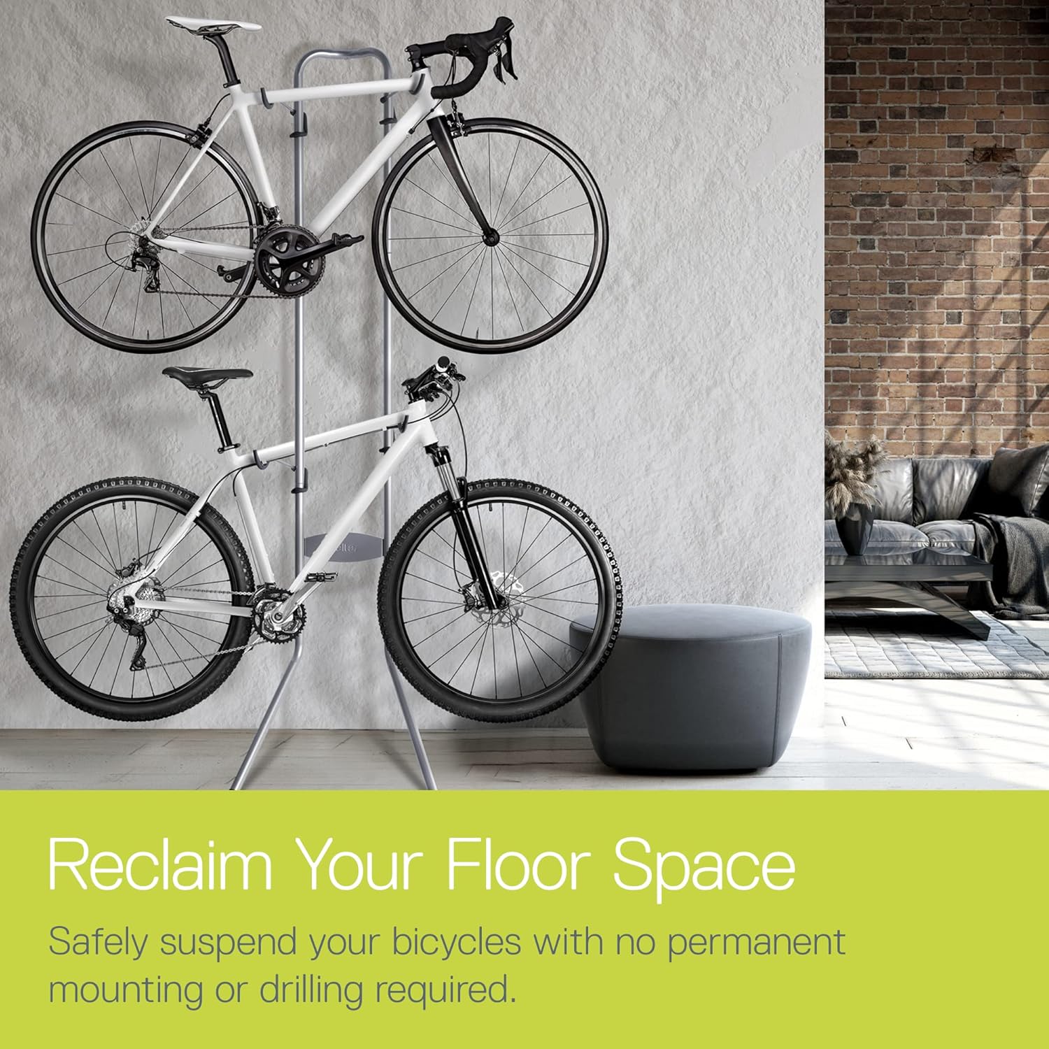 - Stylish, Durable Finish: This rack is elegantly designed with steel construction and a durable powder-coated finish to complement any interior or garage space. Durable rubber feet keep this free-standing bike rack securely in place.