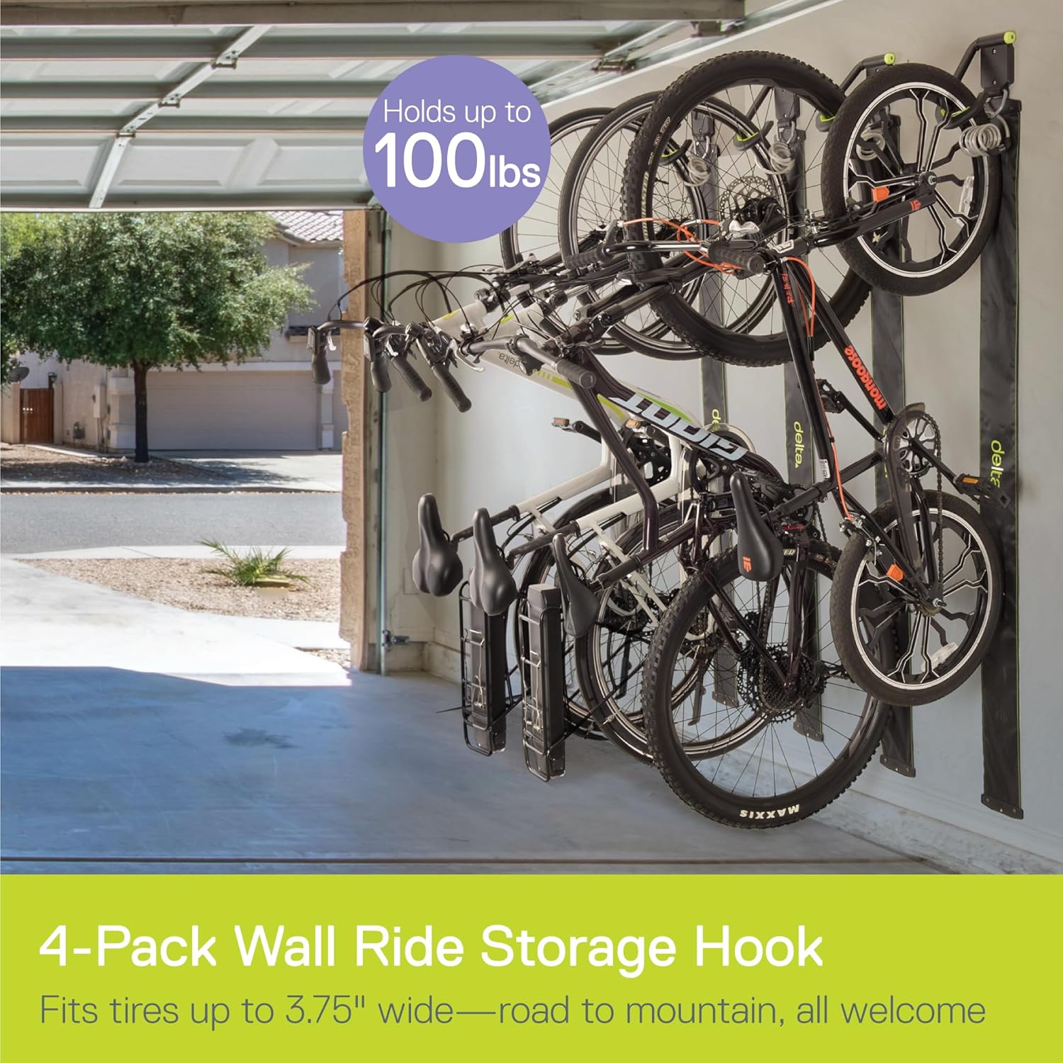 - Fully Adjustable Space Saver: The rack’s super small footprint saves space by storing your bikes vertically. Ideal for an apartment, home, or garage. Adjustable arms are built to accommodate any bike style up to 40 lbs.