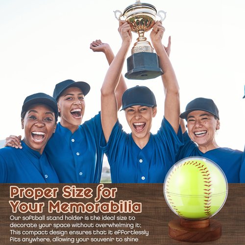 - Proper Size for Your Memorabilia: with its meticulously crafted dimensions 4.72 inches in diameter and a wood base of 3.94 x 1.38 inches; Our softball stand holder is the ideal size to decorate your space without overwhelming it; This compact design ensures that it effortlessly fits anywhere, allowing your souvenir to shine without taking up your living space