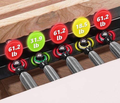 - Premium Performance: Our reformer springs have excellent elasticity and provide stable resistance. The red spring has a tension of 61.2lb, the green spring has a tension of 31.9lb, and the yellow spring has a tension of 18.5lb. It can ensure uniform and continuous support during Pilates exercises