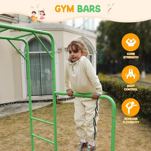 - Multi-Functional Exercise: The monkey bar and gym bar provides an ideal combination of physical activity and outdoor play. Swinging and hanging help kids improve flexibility and build arm strength, allowing them to fully enjoy every moment of exercise