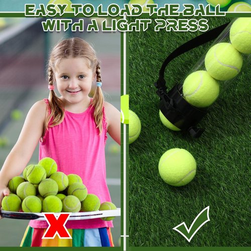 - Delicate Design: this tennis hopper features delicate workmanship, designed with rubber band to prevent balls from falling out, and the shoulder strap allows you to take this tube easily, freeing your hands