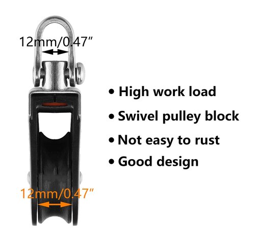 LEQMG High Load Capacity Marine Stainless Steel Nylon Block Universal Single Head Pulley,Smooth Silent Bearing,Rope Runner Boat Accessories(2 Pcs)