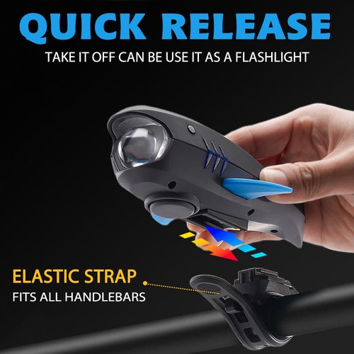 LESOVI Bike Horn with Light, 120dB Electric Bicycle Bell & 400LM Rechargeable Headlight, IPX4 Waterproof Kids Bike Accessories for Boys/Girls, Scooters, Easy Install with Battery (Black)
