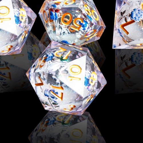 Liquid Core Flower DND Dice Set,7 PCS Resin Polyhedral Dice Set for Dungeons and Dragon RPG MTG Table Game (White Liquid)