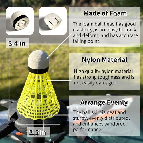 - Material: Nylon birdies badminton are a modern alternative to traditional feather shuttlecocks, crafted from durable nylon materials.Strict selection of nylon feathers, good toughness, high compressive strength, not afraid of extreme cold and heat.