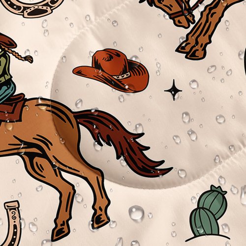 - Themed on classic western cowboy elements, the sleeping bag is printed with realistic cowboy hats, boots, lasso, cowboy badges and other patterns, with bright colors and a sense of hierarchy, as if the Wild West is condensed in the sleeping bag.