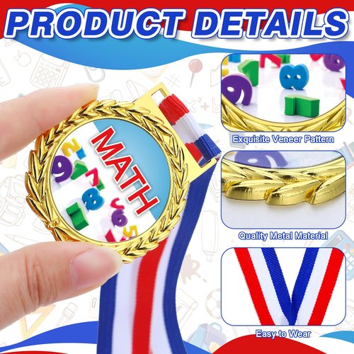- Lively Design: our math gold winner medal comes with white, red, and blue ribbons, which are easy to wear and hang; With "MATH" theme surface and surrounding wheat ear design, they are colorful and lively, can attract others attention and loved by kids