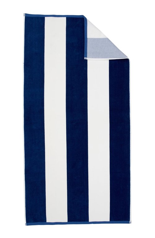 Loon & Lake Sand Resistant Beach Towels Set of 2 | Waffle Weave Reverse to Plush Velour Block Stripe | 2 Pack 30" x 60" | Crafted from 100% Combed Cotton | Wolfeboro Collection - Navy Blue