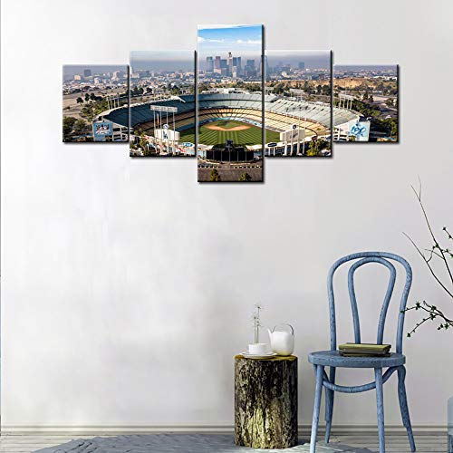 Los Angeles, California - The Famous Dodger Stadium with Downtown LA in the Background Pictures for Living Room 5 Piece Canvas Wall Art Modern Artwork Home Decor Stretched Ready to Hang - 50''Wx24''H