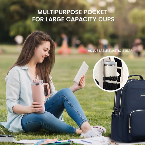 LOVEVOOK Laptop Backpack for Women with Pouch Pocket for Large Capacity Cup,17 Inch Laptop Computer Bag Travel Backpack Purse,Waterproof Work Business Backpack College Teacher Bags,Dark Blue