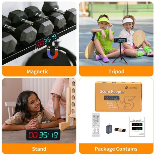 - SUPER-BRIGHT COLORFUL LEDS:Digital scoreboard nice bright colors display score clear even in full sun,you can see clearly within 15 feet.3-level brightness adjustment, built-in powerful magnet and buzzer (sound can turned off)