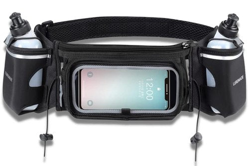 LUREMADE Hydration Running Belt with Water Bottle Holder for Men Women Hiking Fanny Pack Walking Waist Pack for iPhone Phone Carrier Holder Marathon Runner Water Pouch for Jogging Cycling, Black