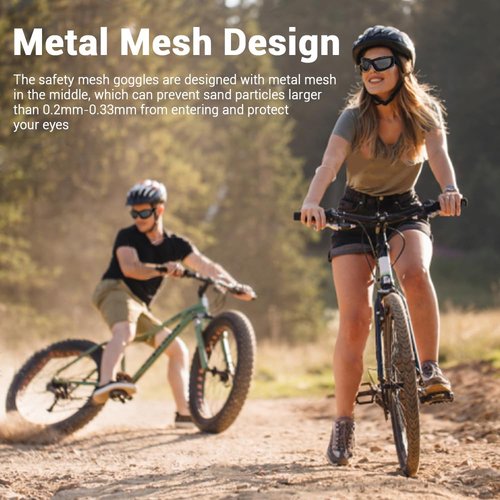 - Unique design:Wire mesh safety goggles, featuring a unique mesh pattern cover, combine sophisticated design with practicality. They effectively block sand particles larger than 0.2mm-0.33mm, ensuring optimal eye protection