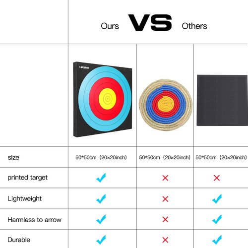 - 【HIGH DENSITY FOAM MATERIAL】Our archery target uses 40° EVA foam material, which is very durable. Light weight and easy to carry. Ideal archery targets for adults, youth, kids, beginners