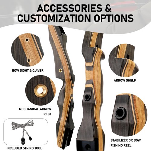 - 【Ergonomic Design】Wooden riser is carefully designed and polished, comfortable to hold. this comfort allows you to obtain the best archery experience and accuracy, and extend your archery time