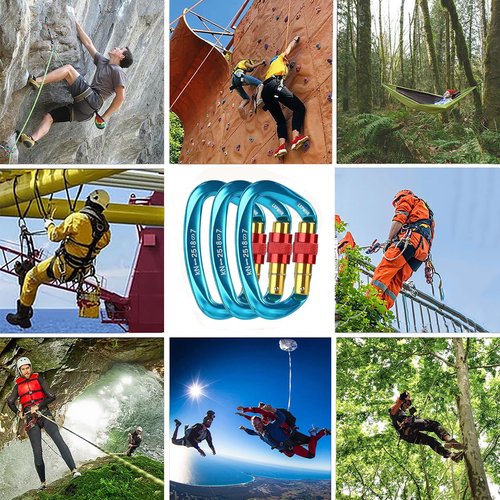 - 【LIGHTWEIGHT】:This D design with a safe quick locking They are compact palm-sized design,very suitable for one-handed operation,everday carry. D shape is particularly suited for connection to equipment such as a belay system,a pulley,descenders or the end of a lanyard. It is efficient in a variety of situations and provides good handling and grip.Quickly lock the carabiner as you climb, even when wearing gloves.