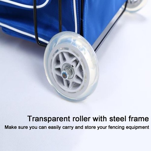 - Transparent Rollers: The bottom is equipped with transparent rollers with a steel frame, which has strong load-bearing capacity and smooth sliding. At the same time, it is also equipped with a pull rod, which is convenient for you to easily pull the fencing bag on different occasions