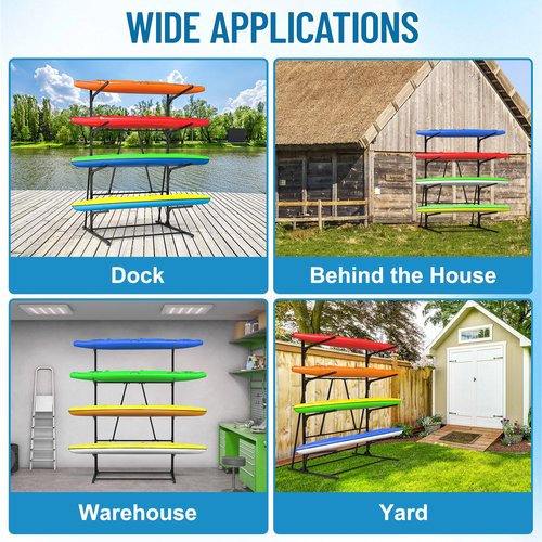 - Wide Range of Application: kayak rack is perfect for displaying kayaks in your dock, warehouse,yard or behind your home. By using this rack, you can efficiently conserve space and maintain an organized, tidy, and clean play area.