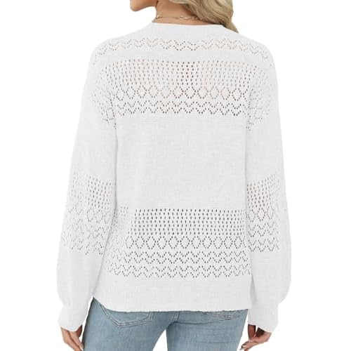 Lylinan Womens Sweaters Casual Boho Long Sleeve Shirts Crewneck Lightweight Crochet Tops Pullover Knit Sweater