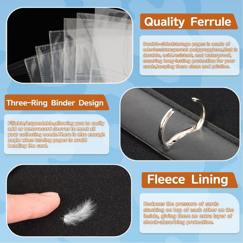 - Durable and Protective Design: Crafted with premium waterproof PU leather, this card binder and holder shields cards from stains, scratches, and bending. The smooth zipper ensures durability for frequent use, while padded sleeves offer extra protection for delicate cards